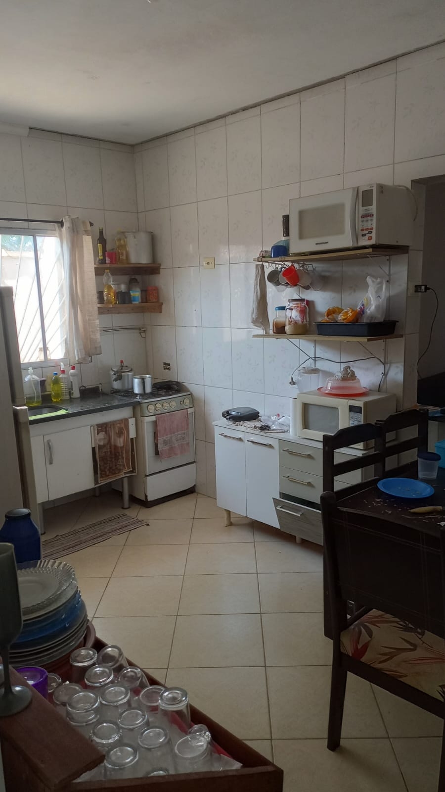 Casa com 2 quartos sendo 1 suíte, cozinha, sala, banheiro social, lavanderia, garagem para 3 quartos.